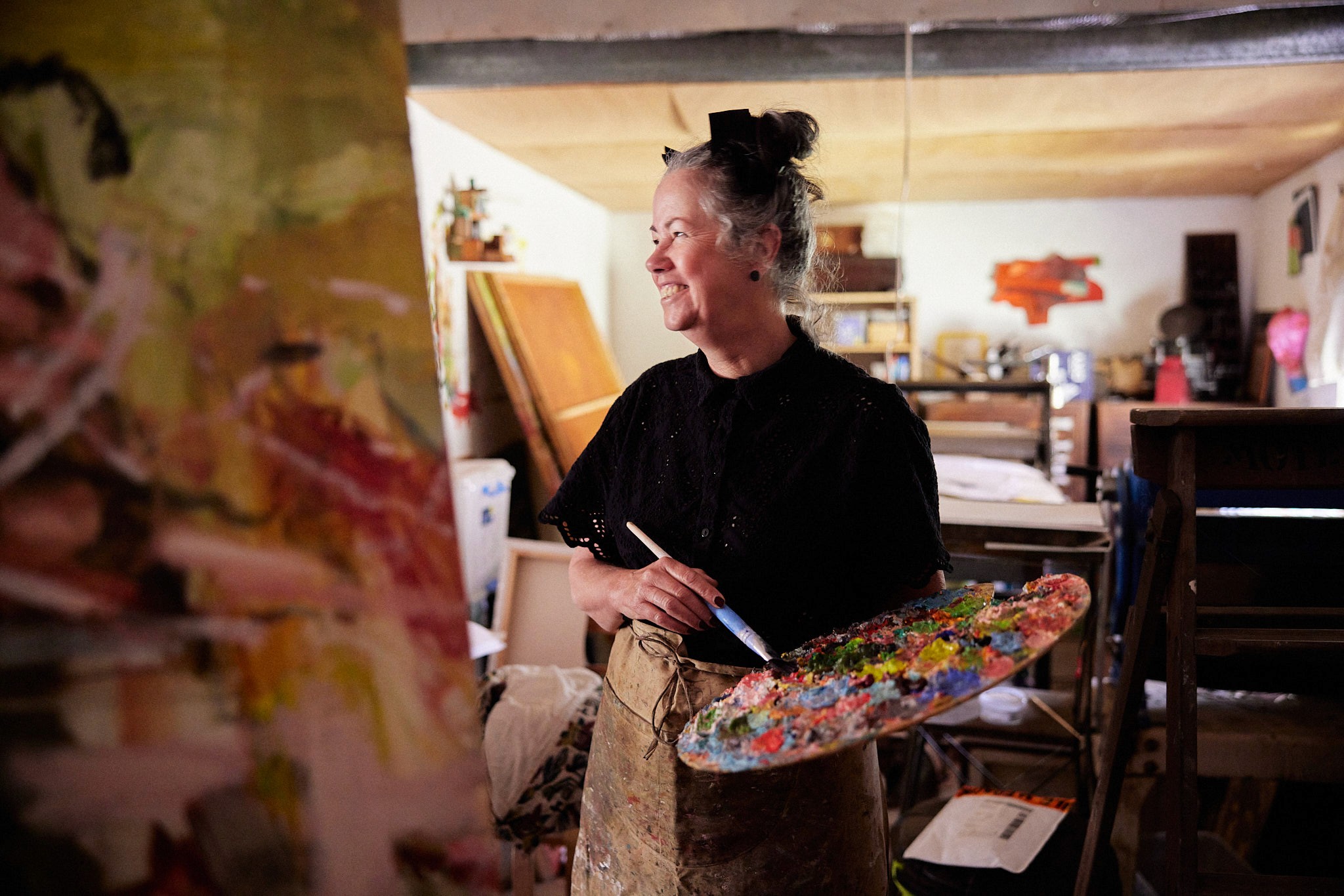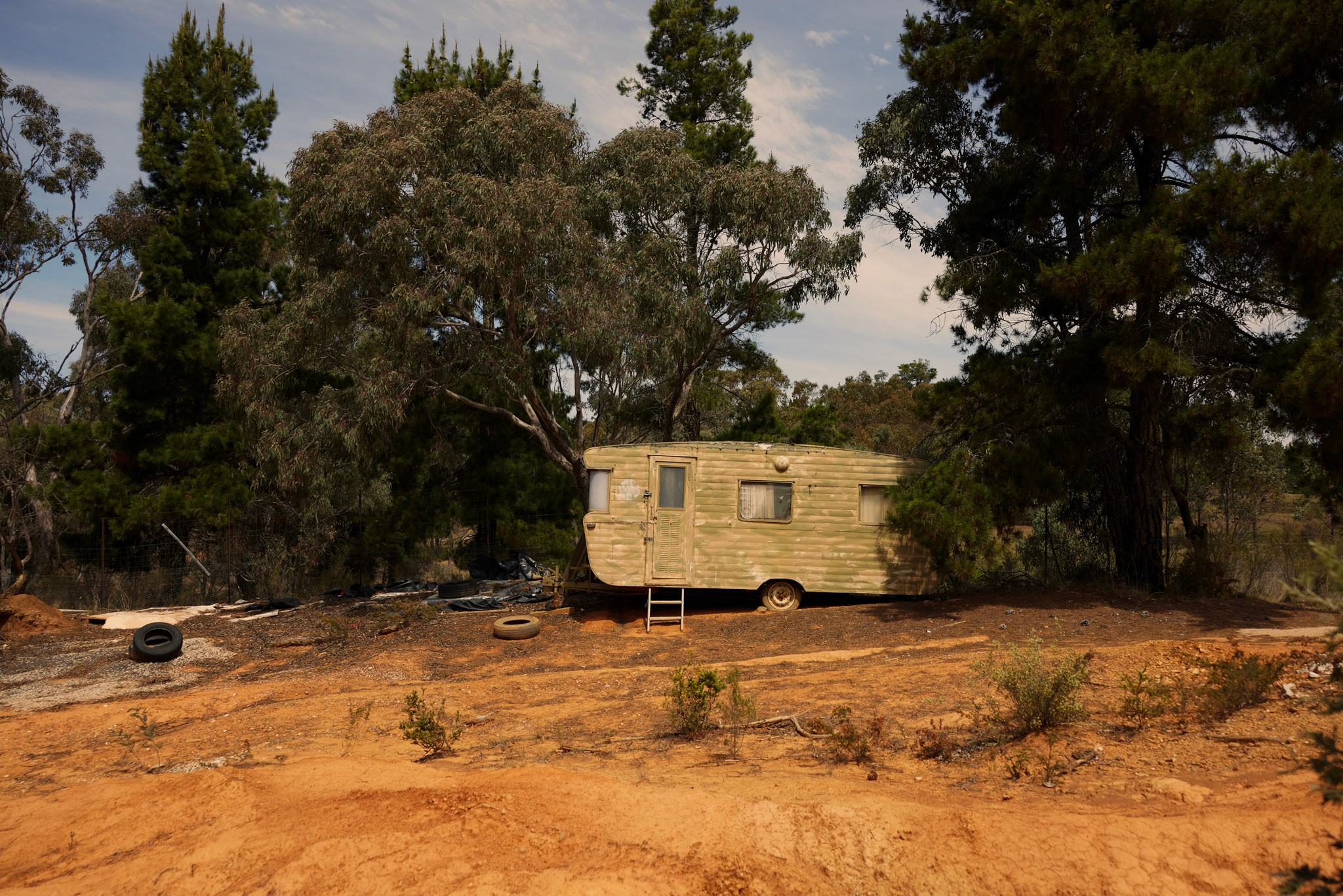 Sculptor Lino Alvarez, says that the landscape of Hill End is present in all of his work. “I’m not trying to show perspectives or sunrises or trees,” he says. “It’s the sense of the landscape that’s in my work.” As we pass through a thick bushel of banksia rose, the smell of fried onions wafts from the 1862 miners’ cottage where Alvarez has lived with his wife, Kim Deacon, since1997.