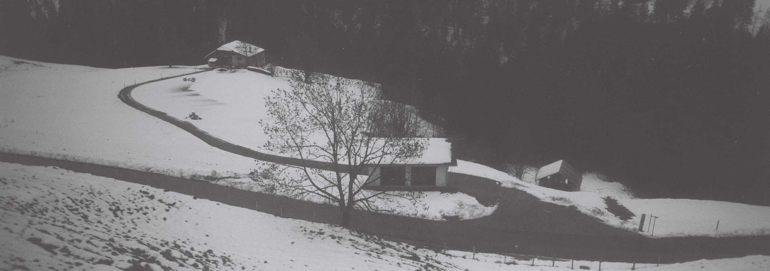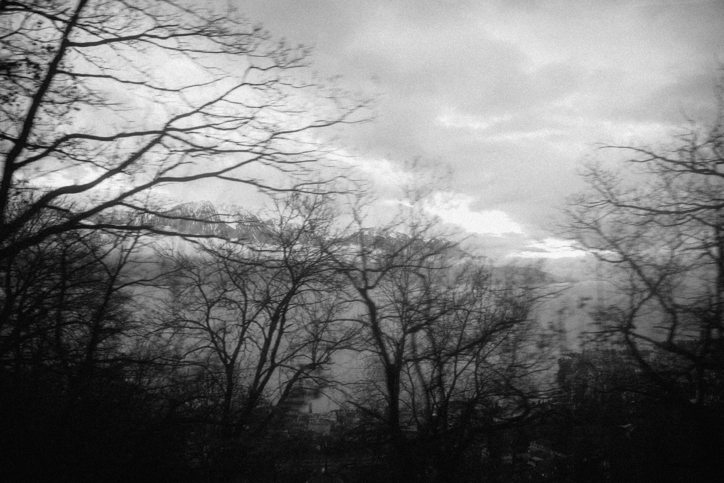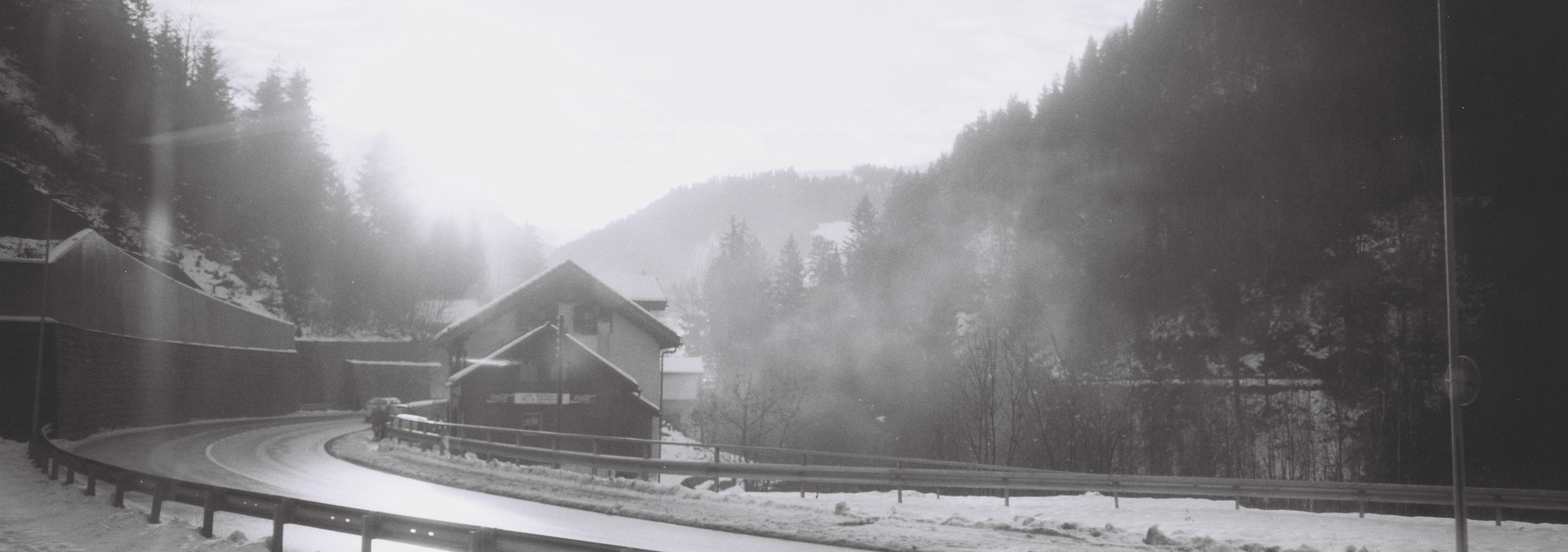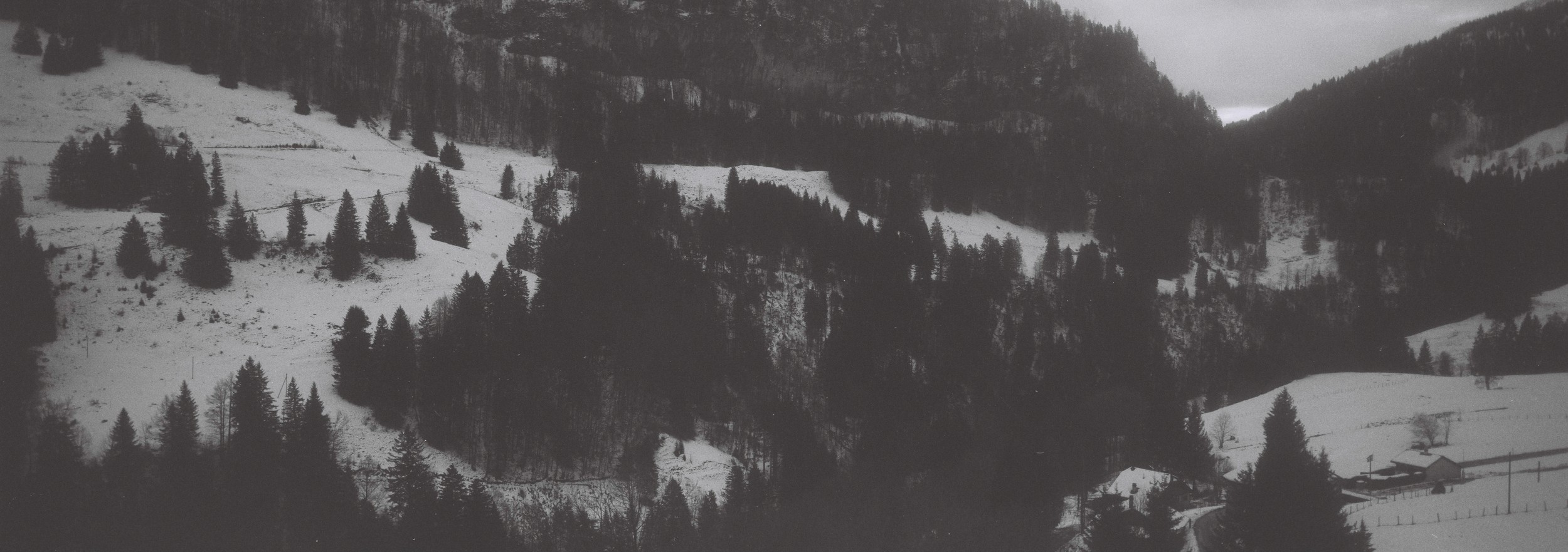 Swiss shoot done with my pal Gotye. Six hours till my Sydney flight. Lausanne was green, but I needed snow. Swiss trains never late, they say. So, I jumped on, chasing white up the Alps. Higher, snow drifting off the mountains into space. Last stop. I jumped off, jumped on the train heading back down the mountain. Arrived at the airport early. With these x-pan shots to boot.